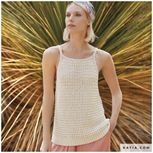 Patroon te koop via de officiële Katia website https://www.katia.com/NL/modellen-patronen-lente-zomer-dames-topje-6166-12.html