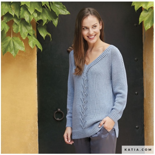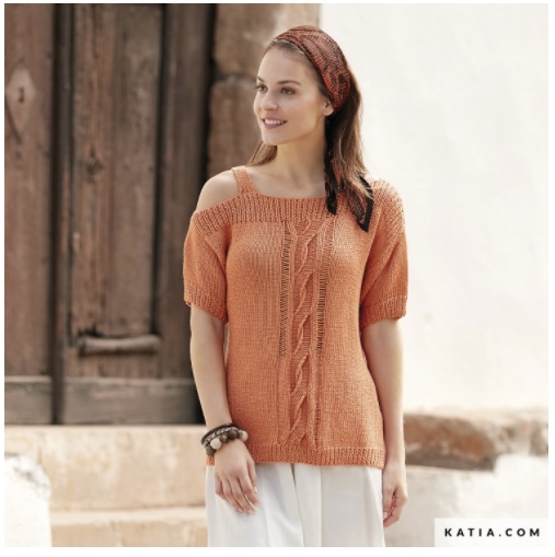 Patroon te koop via de officiële Katia website https://www.katia.com/NL/modellen-patronen-lente-zomer-dames-trui-6166-31.html
